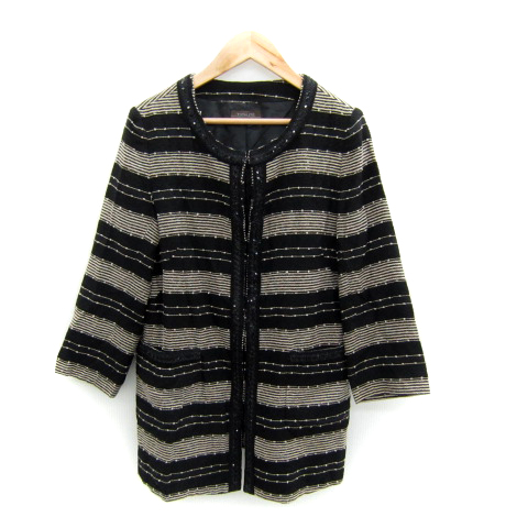 【中古】トータリテ ノーカラージャケット ボーダー柄 スパンコール装飾 38 M 黒 ブラック ベージュ レディース