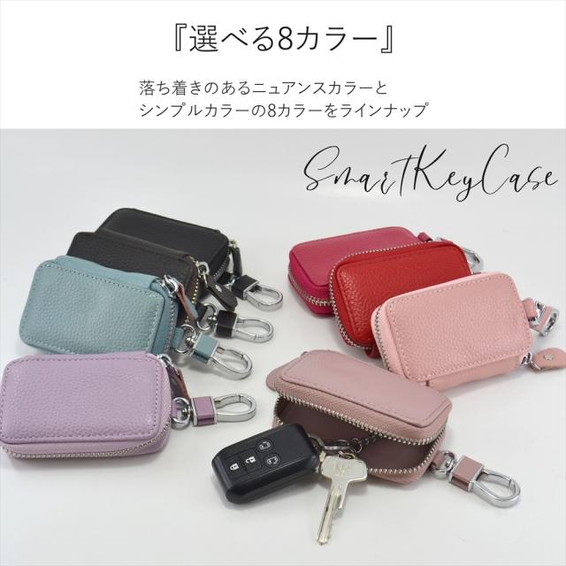 スマートキーケース キーケース ファスナー レディース メンズ キーカバー シングルジッパー リップ ケース エンジンスターター ケース 小物入れ カード キーチェーン くすみカラー バッグに掛けられる カラビナ付き 鍵入れ キーレス