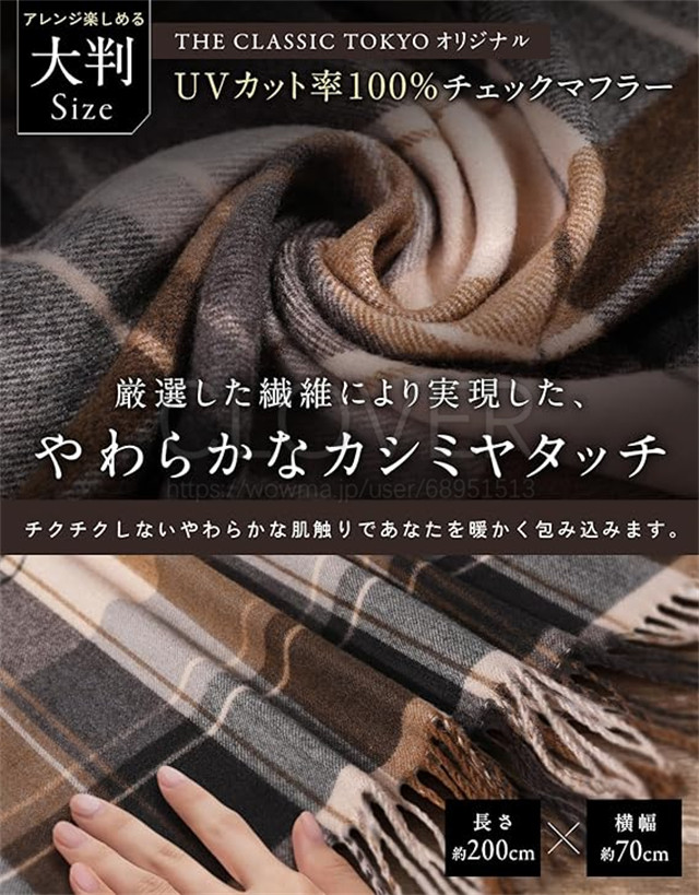 ◎厚みのあるやわらかい生地と大判サイズが首元をしっかり温めてくれます。