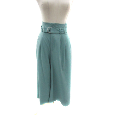 【中古】ミラオーウェン ガウチョパンツ ワイドパンツ 七分丈 無地 ウエストベルト付き 1 緑 グリーン レディース