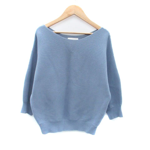 【中古】プロポーション ボディドレッシング ニット カットソー リブ ラウンドネック 七分袖 FR 青 ブルー