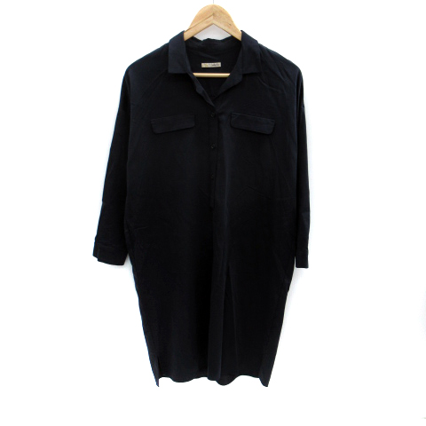 【中古】ルラシェ Relacher ワンピース ひざ丈 長袖 オープンカラー F 紺 ネイビー /SM43 レディース