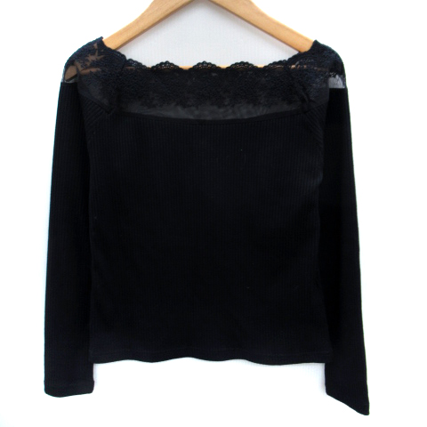 【中古】ロイヤルパーティー ROYAL PARTY カットソー 長袖 ボートネック レース 刺繍 リブ F 紺 ネイビー
