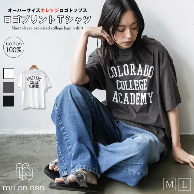春新作 半袖カレッジプリントTシャツ 綿100% クルーネック ハイネック 半袖 M L トップス レディース 春夏 ミリアンデニ メール便(郵2) t92506