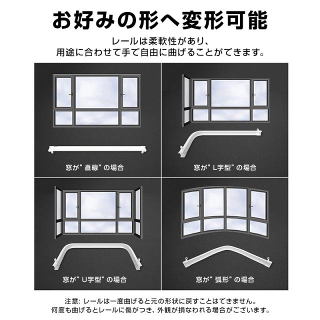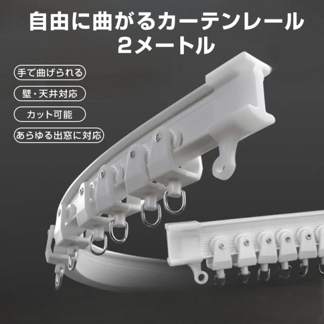 カーテンレール 長さ2m 手で折り曲げられる 出窓 天井 壁 部屋 カーブレール 曲がる 静音 取り付け可能 簡単 DIY 部品付属 長さカット可 模様替え インテリア