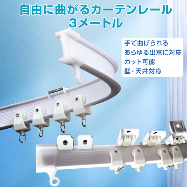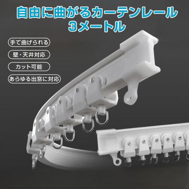 カーテンレール 長さ3m 手で折り曲げられる 出窓 天井 壁 部屋 カーブレール 曲がる 静音 取り付け可能 簡単 DIY 部品付属 長さカット可 模様替え インテリア