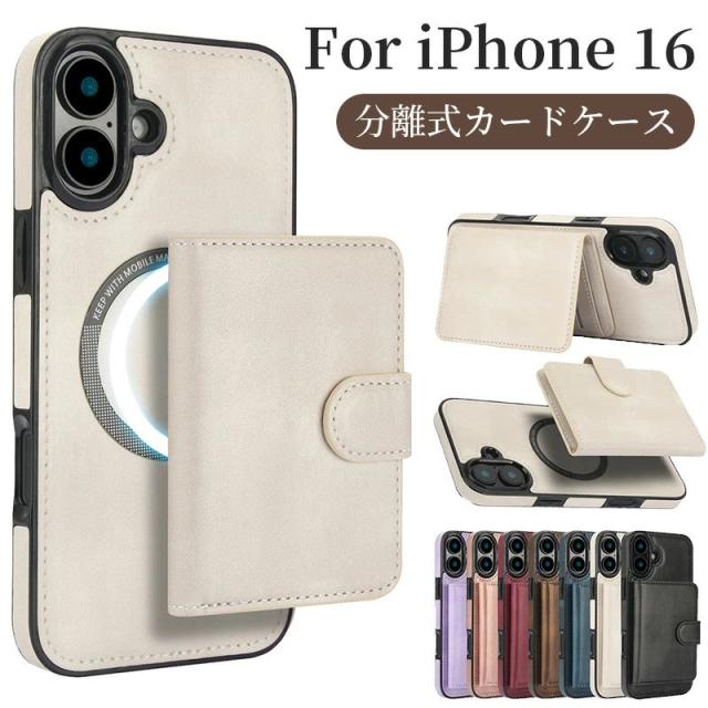 スマホケース iPhone 16 Pro ケース iPhone16 手帳型カバー 分離式 カードケース アイフォン16 Pro Max ケース iPhone 16 15 14 ケース カード収納 強力 磁石 薄型 iPhone15 Pro Max 14 plus ケース取り外し可能 角度調整可能 背面magsafe カードケース付き