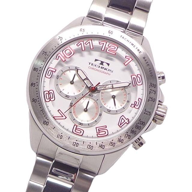 テクノス 腕時計 メンズ ウォッチ クロノグラフ メタルベルト ステンレス 無垢 クォーツ 多針 見やすい ストップウォッチ