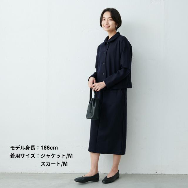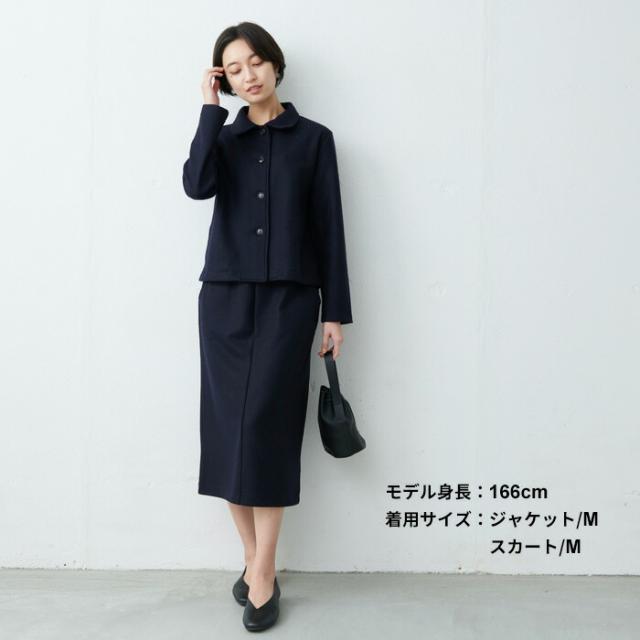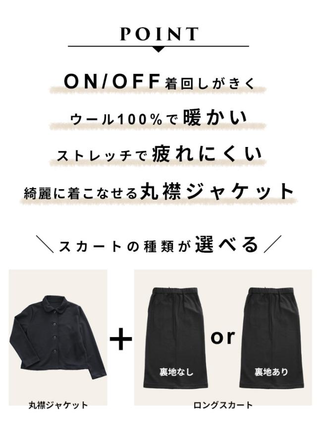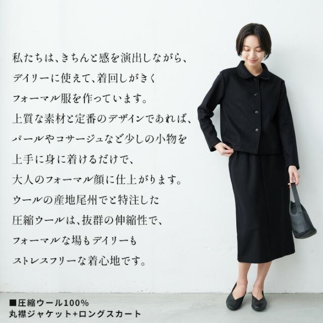 スカート裏地付き 圧縮ウール100% 丸襟 ジャケット + ロング スカート 2点セット 日本製 / 卒業式 セットアップ 40代 50代 入学式 ママスーツ 30代 スーツ レディース フォーマル 膝丈 法事 結婚式 冠婚葬祭 七五三 母 マルエリ 暖かい