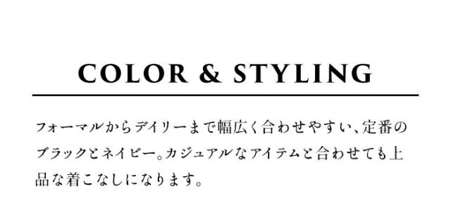 特徴 私たちは、きちんと感を演出しながら、デイリーに使えて、着回しがきくフォーマル服を作っています。上質な素材と定番のデザインであれば、パールやコサージュなど少しの小物を上手に身に着けるだけで、大人のフォーマル顔に仕上がります。ウールの産地尾州でと特注した圧縮ウールは、抜群の伸縮性で、フォーマルな場もデイリーもストレスフリーな着心地です。