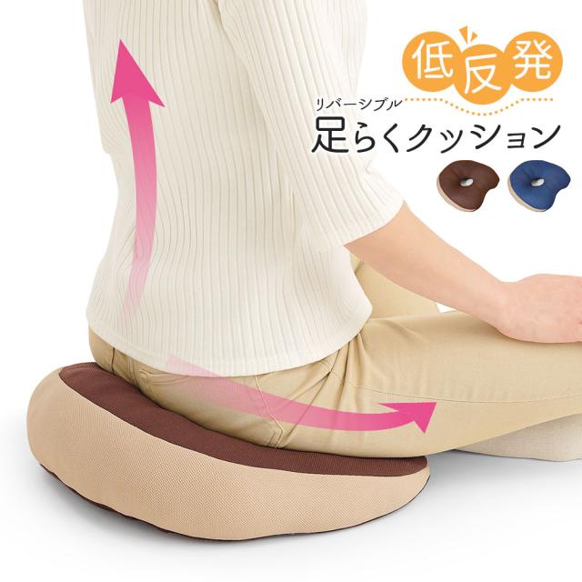 クッション 低反発 姿勢 座布団 デスクワーク 椅子 イス グッズ 腰 こし 美姿勢 背筋 猫背 ゆがみ オフィス テレワーク 座り作業 ソファ 円座形状 丸穴 低反発ウレタン 前傾姿勢 負担軽減 体圧分散 リバーシブル ネイビー ブラウン 低反発リバーシブル足らくクッション 196