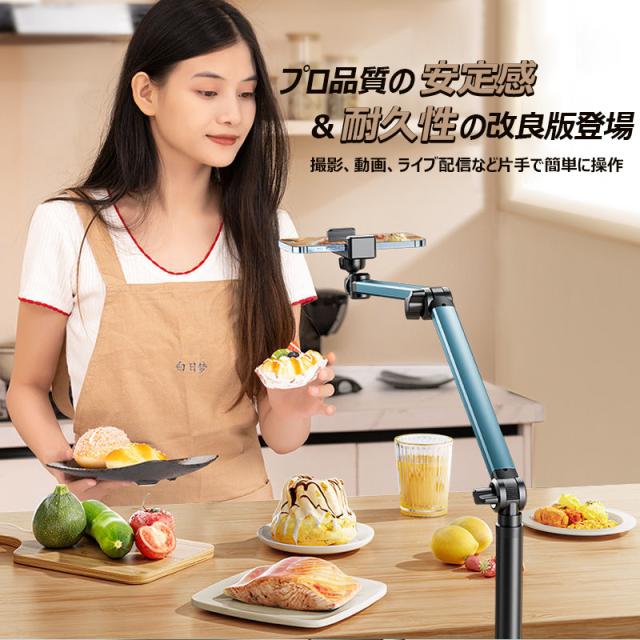 スタンド 自撮り棒 デスクトップ 伸縮調節 360度回転 多機能 カンチレバースタンドライブ 携帯 専用 着地 俯瞰 撮影 iPhone Android対応 1.7m