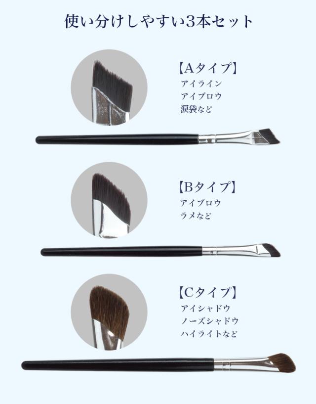 メイクブラシ 3本 セット アイシャドウブラシ 斜め 化粧道具 化粧ブラシ メイク雑貨 アイメイク アイブロウ アイシャドウ シェーディング アイライナー