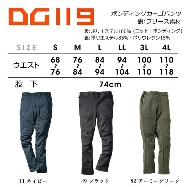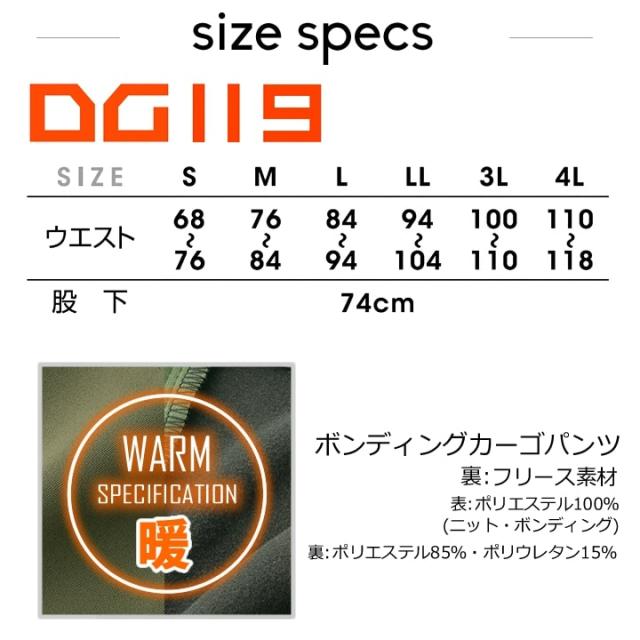 防寒パンツ 暖パン ボンディングカーゴパンツ DG119 D.GROW ストレッチ 裏フリース 保温 制電 暖かい ズボン パンツ 秋冬 アウトドア 釣り スポーツ DIY 自転車 バイク 移動着 作業服 作業着 クロダルマ【送料無料】