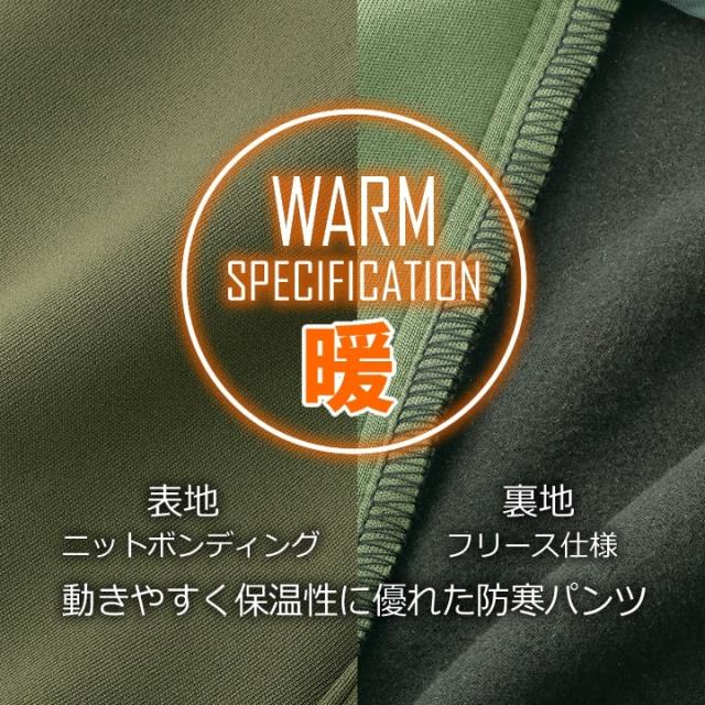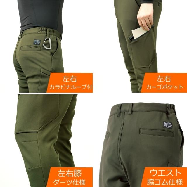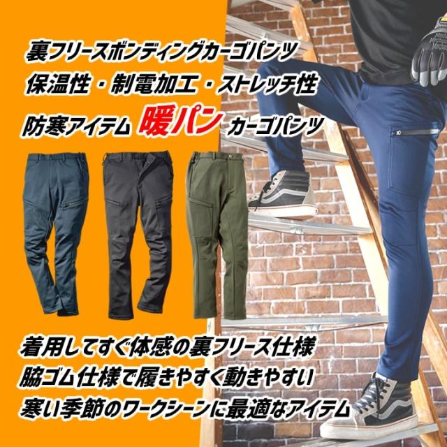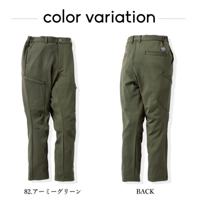 保温性に優れ履いてすぐに暖かさを体感できる裏フリースボンディングカーゴパンツ。