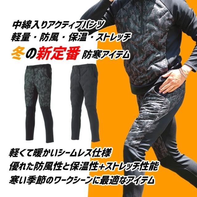 防寒パンツ 中綿入りアクティブパンツ DG601 D.GROW ストレッチ 防風 保温 軽量 中綿 フリース シームレス 暖かい ズボン パンツ オーバーパンツ 秋冬 アウトドア スポーツ DIY 自転車 バイク 移動着 作業服 作業着 クロダルマ【送料無料】