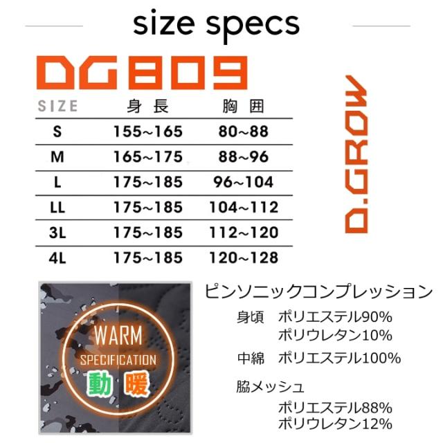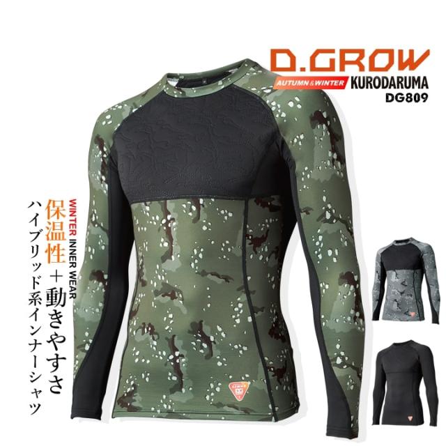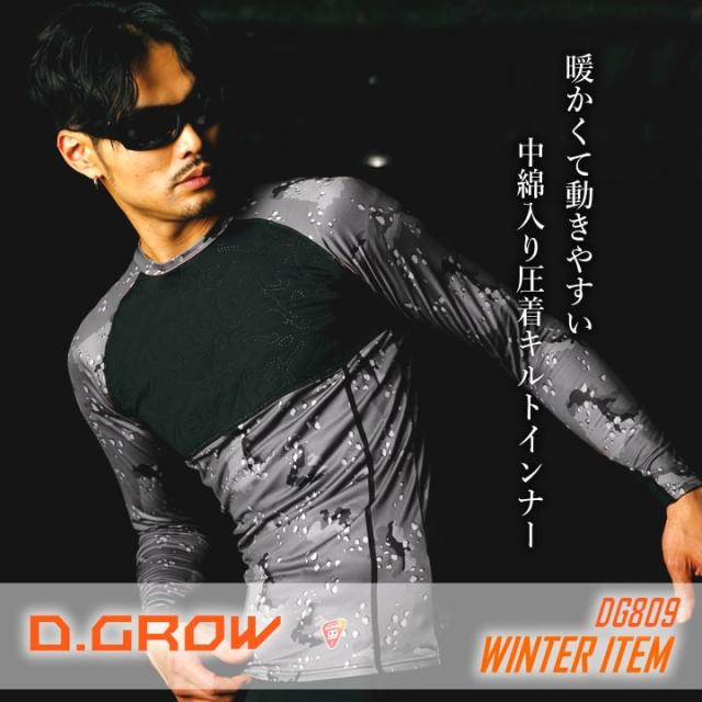 防寒インナー コンプレッション DG809 D.GROW ストレッチ 中綿 キルト 防風 保温 軽量 暖かい ムレ軽減 長袖 秋冬 アウトドア スポーツ DIY 作業服 作業着 クロダルマ【送料無料】
