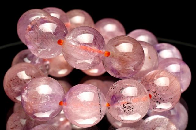 【1点物】AA☆上質 ピンクスーパーセブンアメジスト 10mm ブレスレット 金運・仕事運【送料無料】_M4593