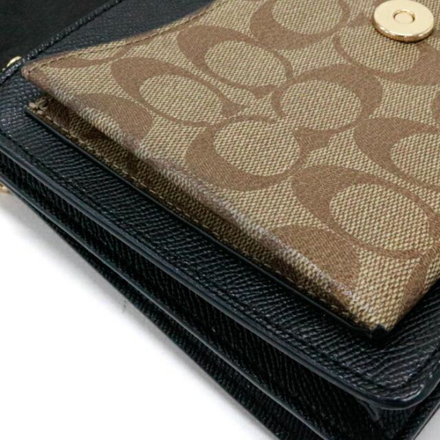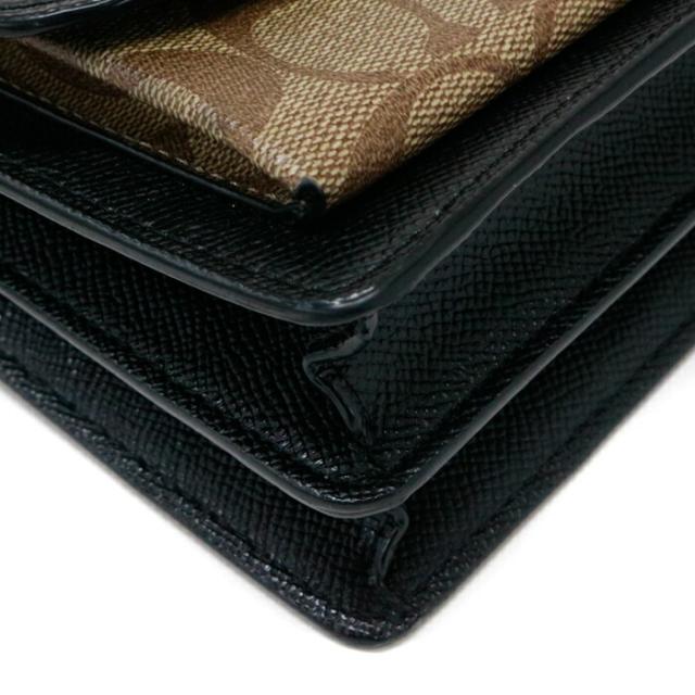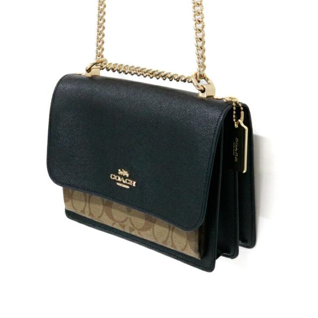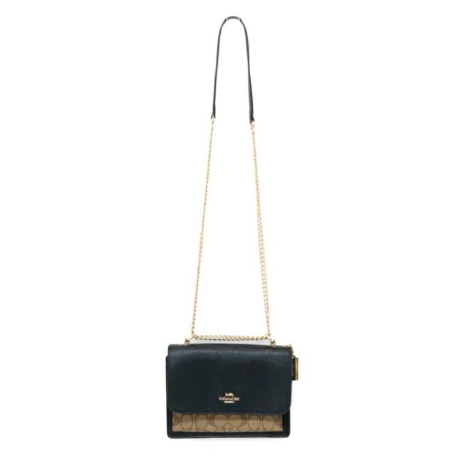 コーチ COACH クレア チェーンショルダー クロスグレインレザー PVC シグネチャー 91019 ショルダーバッグ クロスボディ チェーンバッグ 肩掛け 斜めかけ レディース ブラック / カーキ (ベージュ) 中古 maz01018