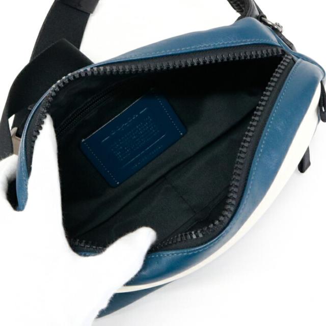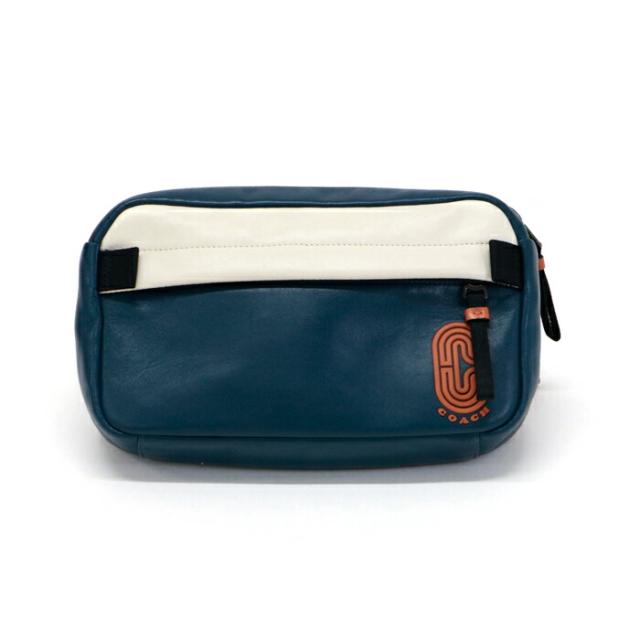 コーチ COACH ウエストバッグ ボディバッグ スムースレザー カラーブロック ロゴ 89920 ショルダーバッグ クロスボディ 斜め掛け 肩掛け スリングバッグ メンズ レディース エーゲ (ネイビー) / チョーク (アイボリー) / オレンジクレイ (オレンジ) 中古 mba15016