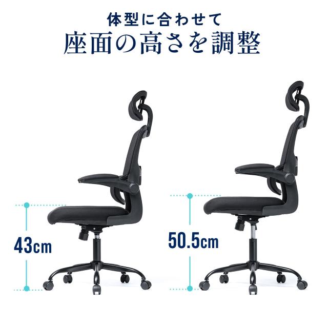 メッシュチェア オフィスチェア ロッキング 肘跳ね上げ 2Dアームレスト ミドルバック ヘッドレスト付き S字カープ ランバーサポート[150-SNCM43]