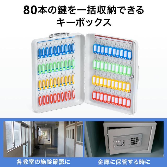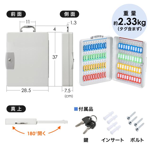 ⇒ご購入の前にご確認下さい80本の鍵を収納することが出来る大容量鍵ボックス。取っ手付きなので容易に持ち運び可能。鍵付き扉でセキュリティ強化。付属のボルトで壁取付可能。4色のキーホルダータグで鍵管理可能。【WEB限定商品】