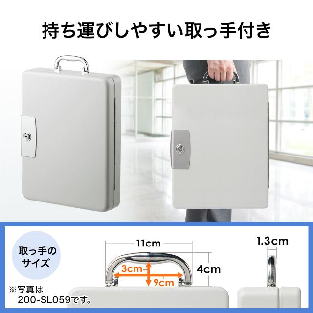 大容量鍵ボックス キーボックス キーケース 取っ手付き 大容量 壁掛け対応可能 鍵付き 80本収納可能[200-SL121]