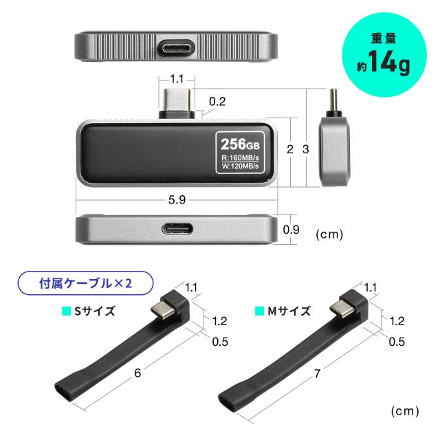 ■サイズ:約W5.9×D2×H0.9cm(Type-C端子部分を含まず)■重量:約14g