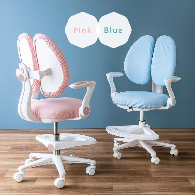 学習椅子 キッズチェア 児童椅子 子供椅子 姿勢矯正 洗えるカバー付き 肘付き 肘跳ね上げ 足置きリング付き ガス圧昇降 モールドウレタン ダブルバッグ ロックキャスター ブルー ピンク[150-SNCK47]