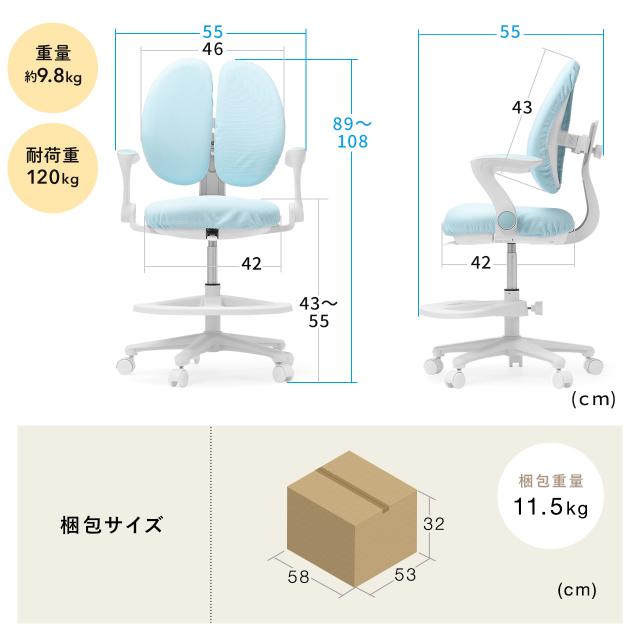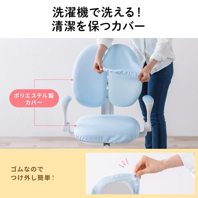 ⇒ご購入の前にご確認下さい姿勢を矯正しながら学習に集中することが出来るキッズチェア。ダブルバックの背もたれがお子様の体をしっかりとサポート。お子様の成長にあわせて背もたれの高さ調節可能。跳ね上げ式のアームレスト。カバーは取り外し出来て洗濯可能。体の小さいお子様にも安心して使える足置き付き。座ると椅子が固定するロックキャスター採用。【WEB限定商品】