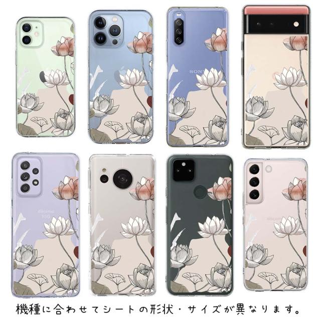 スマホケース iPhone Google Pixel Xperia Galaxy AQUOS arrows 着せ替え シート インナーシート スマホカバー 背面 透明 クリア オリジナル デザイン 花 花柄 プランツデザイン 睡蓮