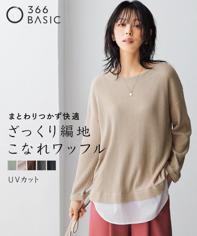 品質=【本体】ポリエステル65%・綿35%(カットソー ワッフル)【別布部分】ポリエステル80%・綿20%(織物 平織)袖口は折り返したデザインです。伸ばすことはできません。この商品は着丈に前後差のあるデザインです。着丈は後ろ中心の寸法を記載しています。※この商品は好評のため長期間、販売しており、生産時期によって下げ札がついているものとついていないものがあります。 原産国:中国製 洗濯表示:洗濯機OK ネット使用