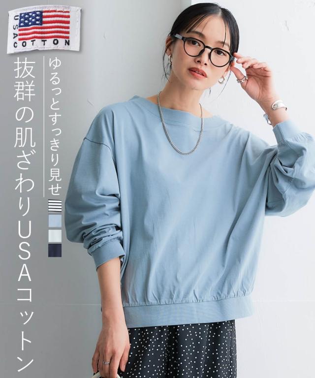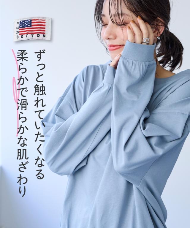 Tシャツ カットソー レディース USAコットン ゆるシルエット プルオーバー 毛玉防止 UVカット 有 S〜M