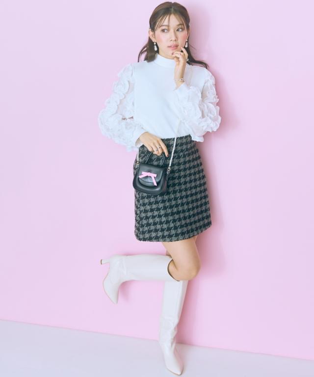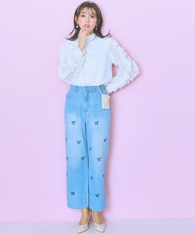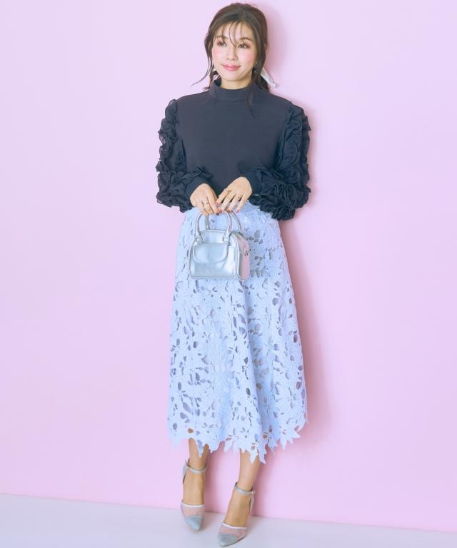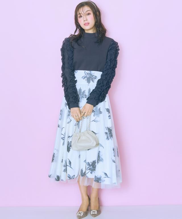 品質=[本体]ポリエステル50%・綿45%・ポリウレタン5% [袖フリル部]レーヨン66%・ポリエステル25%・再生繊維(セルロース)20%