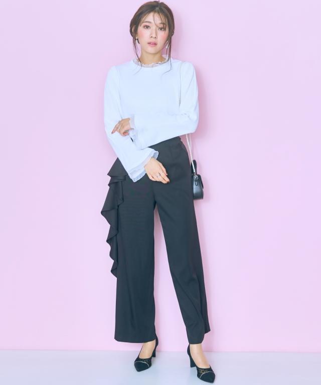 大きいサイズ サイドラッフルワイドパンツ marun