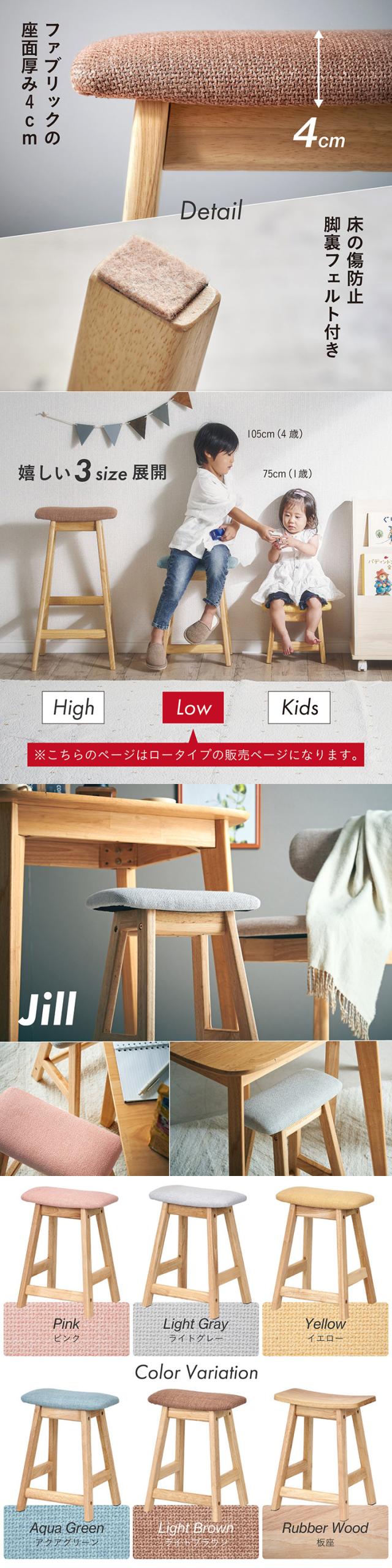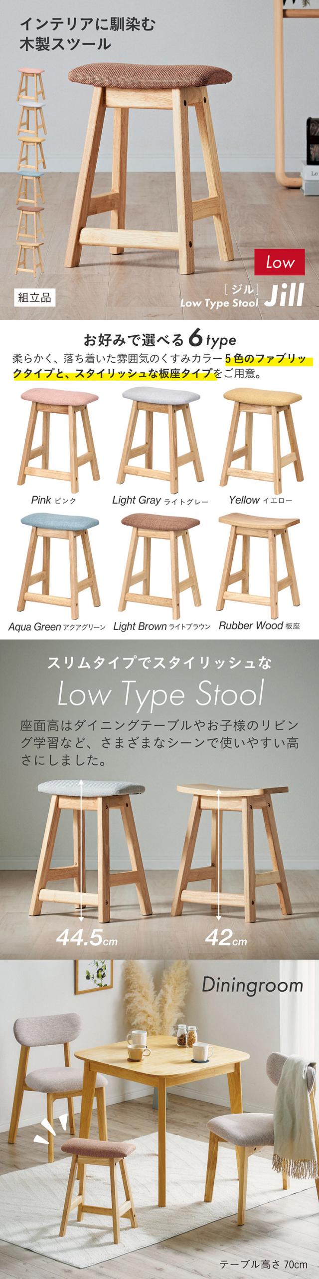 スツール 木製 おしゃれ 北欧 シンプル Jill(ジル) Lowタイプ オットマン 椅子 チェア 足置き ウッドスツール ロースツール キッズスツール ロータイプ 6色対応 ファブリック 板座 天然木 カウンタースツール