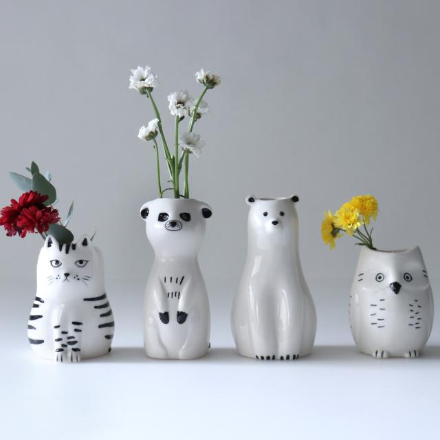 動物をモチーフにした磁器製のフラワーベース