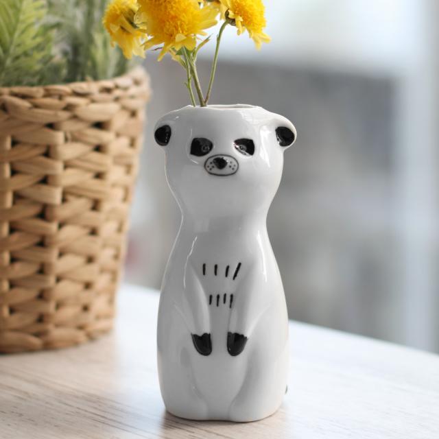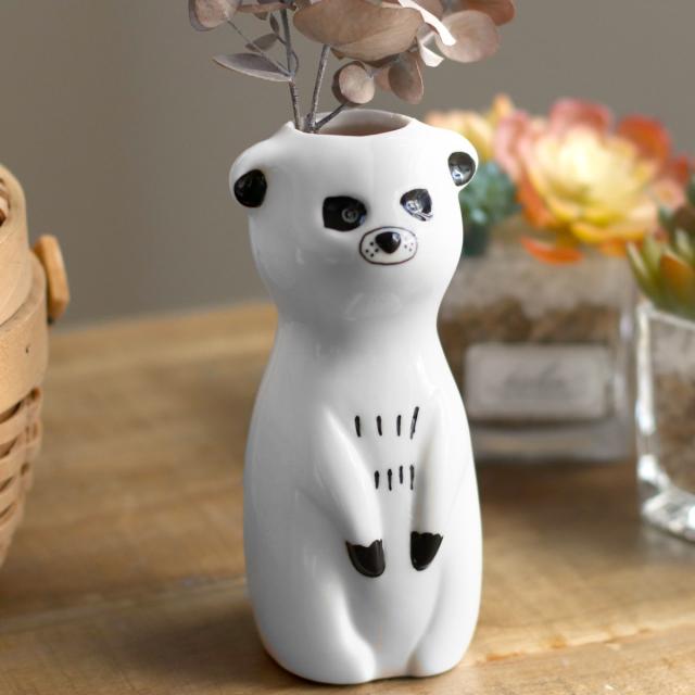 動物をモチーフにした磁器製のフラワーベース ミーアキャット