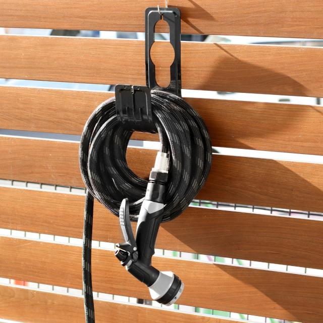 長いホースをしっかりとまとめて収納できる、ホースハンガー付きです。