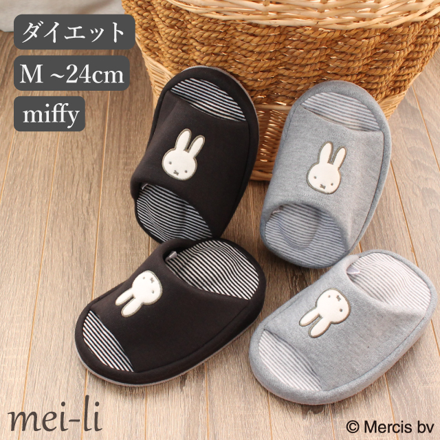 スリッパ ミッフィー 幅広 ダイエット エクササイズ ボーダー ミニ かわいい レディース おしゃれ 前あき 室内 ルームシューズ かかとなし 1足