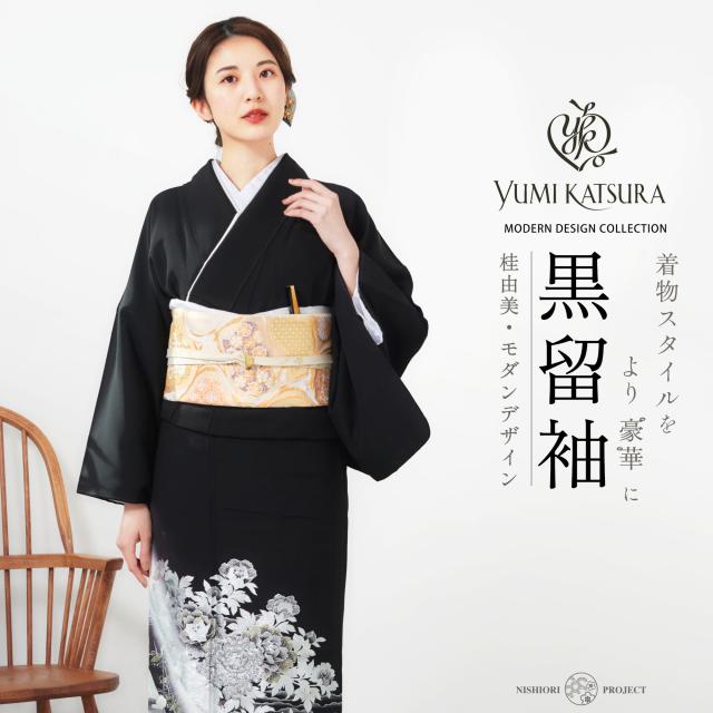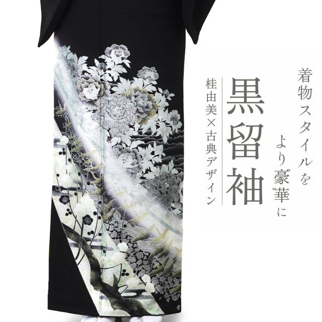 桂由美 ブランド 黒留袖 フルセット フォーマル着物レンタル 着物セット 華やかな刺繍入り Yumi Katsura 古典 白銀 鶴 薔薇 梅 No241