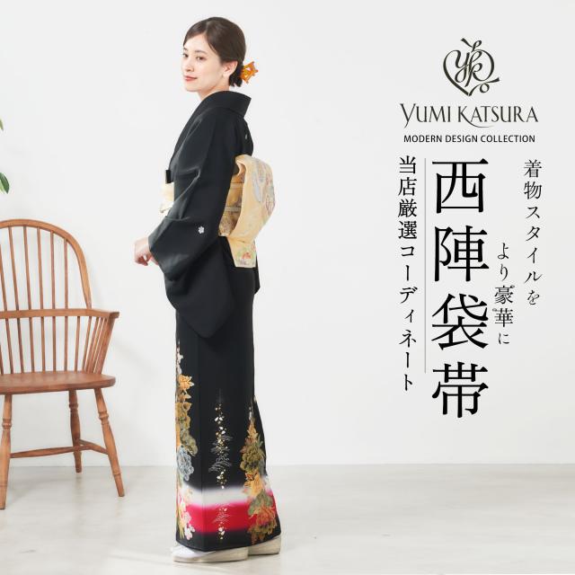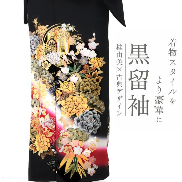 桂由美 ブランド 黒留袖 フルセット フォーマル着物レンタル 着物セット 華やかな刺繍入り Yumi Katsura 古典 御所車 赤 牡丹 No242