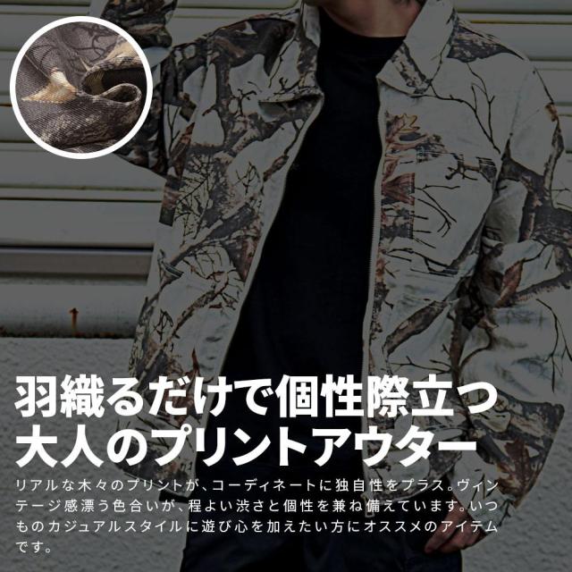 ジャケット メンズ アウター おしゃれ ジップ ブルゾン デニムジャケット Gジャン 総柄ジャケット ミリタリー プリント ヴィンテージ ビンテージ 古着 リアルツリー ゆったり CavariA 20代 30代 40代 ユニセックス 男性 男 服 秋 冬 春 春服 ファッション [CARE24-47]