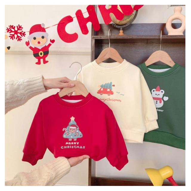 キッズ 衣装 スウェット トレーナー 子供服 裏起毛 パーカー 送料無料 ベビー 女の子 仮装 男の子 送料無料 おしゃれ 長袖 サンタ柄 プリント カジュアル トレーナー コスプレ 長袖 ラウンドネック トップス 春秋 可愛い クリスマス 90 100 110 120 130