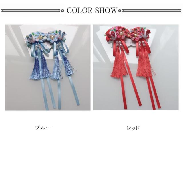髪飾り 花 七五三 卒業式 2点 髪飾り 2点セット 3歳 七五三 髪飾り 女の子 七歳 7歳 ガールズ 卒園式 藤下がり 着物 浴衣 ヘアクリップ ヘアアクセサリー レッド パープル ブルー ピンク