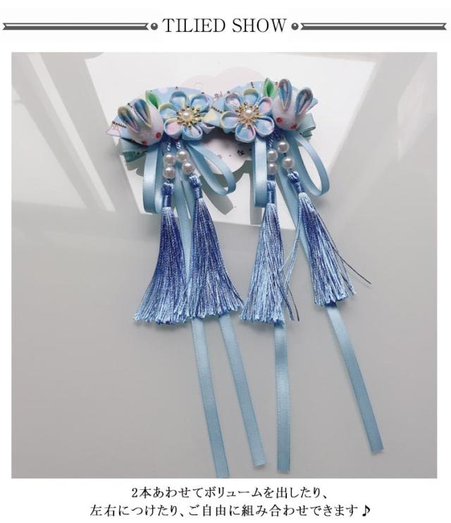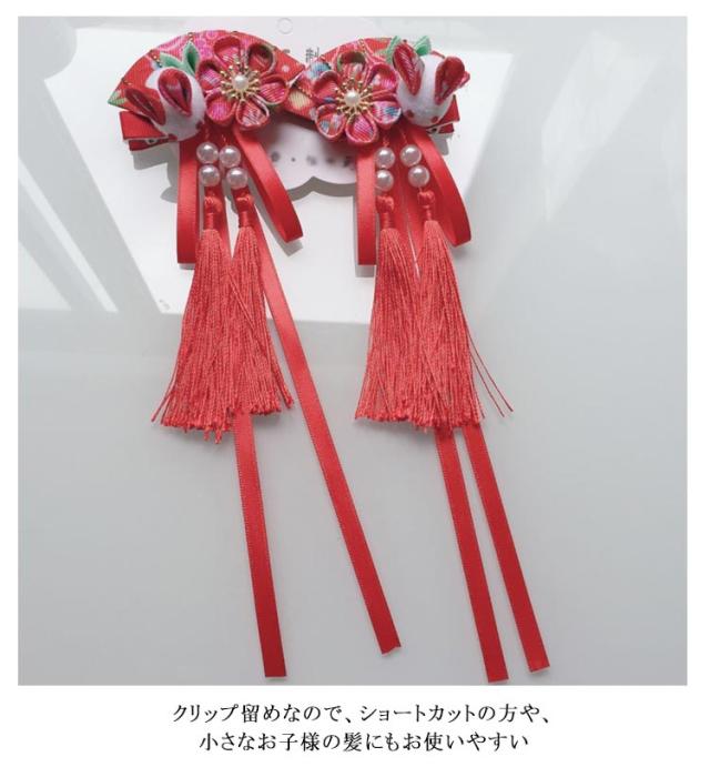 | ・七五三・卒園式・お正月・ひな祭りなどの着物や袴などの和装にピッタリ! ・2本あわせてボリュームを出したり、左右につけたり、ご自由に組み合わせできます♪ ・クリップ留めなので、ショートカットの方や、小さなお子様の髪にもお使いやすい | |