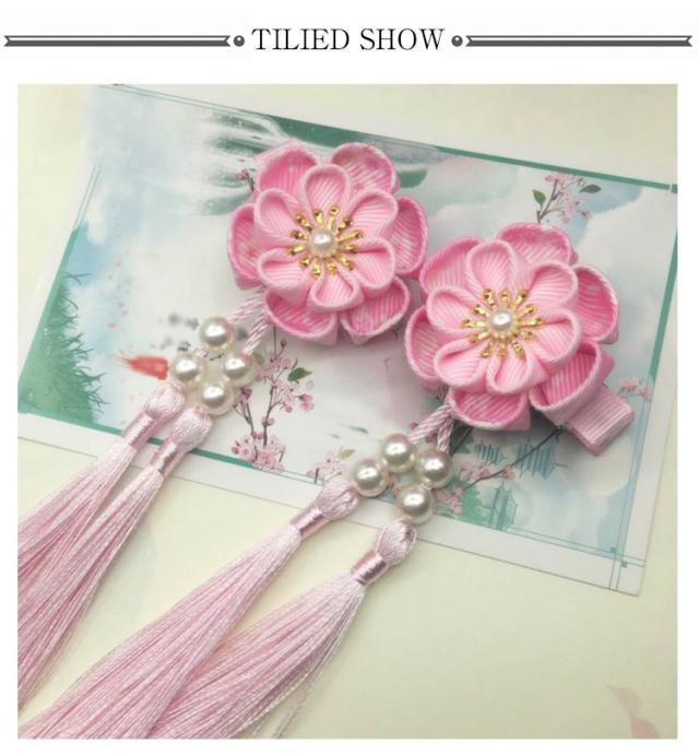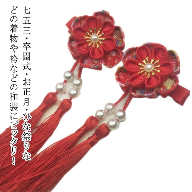 | 七五三・卒園式・お正月・ひな祭りなどの着物や袴などの和装にピッタリ! クリップ留めなので、ショートカットの方や、小さなお子様の髪にもお使いやすい! | |