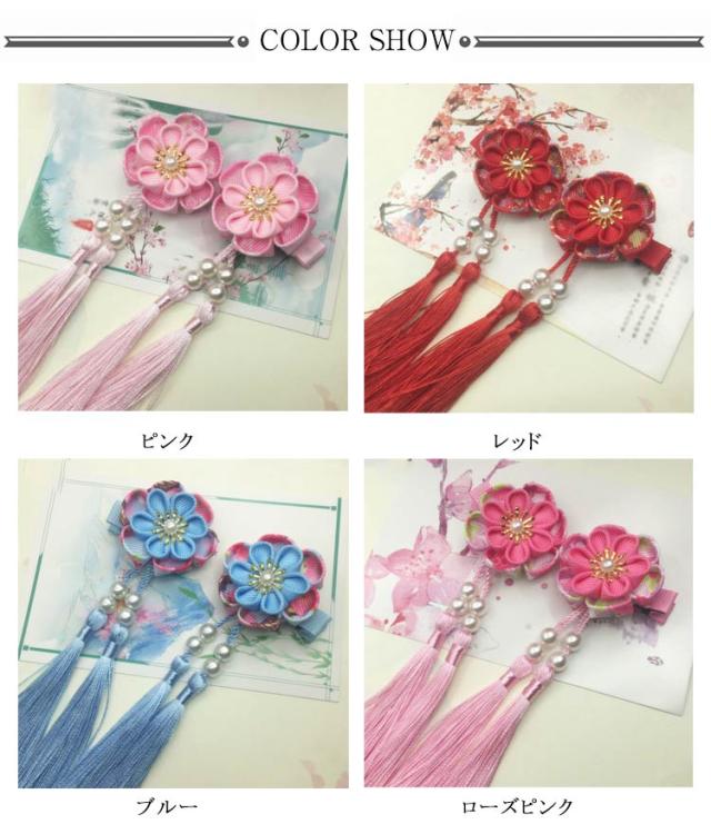 クリップ留め 卒園式 髪飾り 2個入り ちりめんかんざし イエロー 着物 卒業式 つまみ細工 花盛り ちりめん 七五三 オレンジ ピンク 藤下がり ブルー 浴衣 ヘアクリップ ヘアアクセサリー かみかざり 三歳 七歳