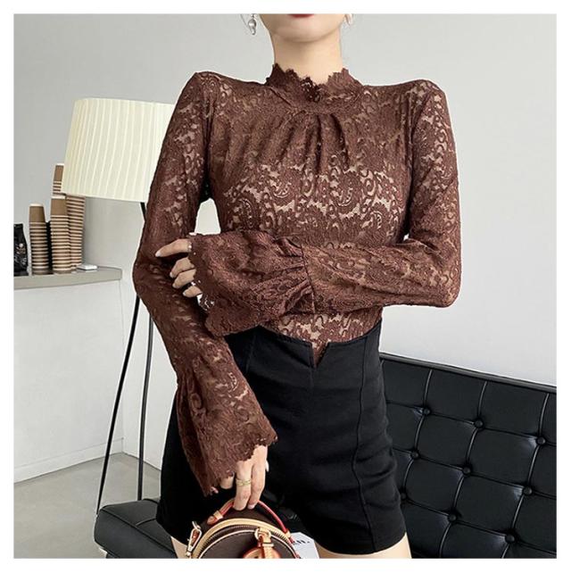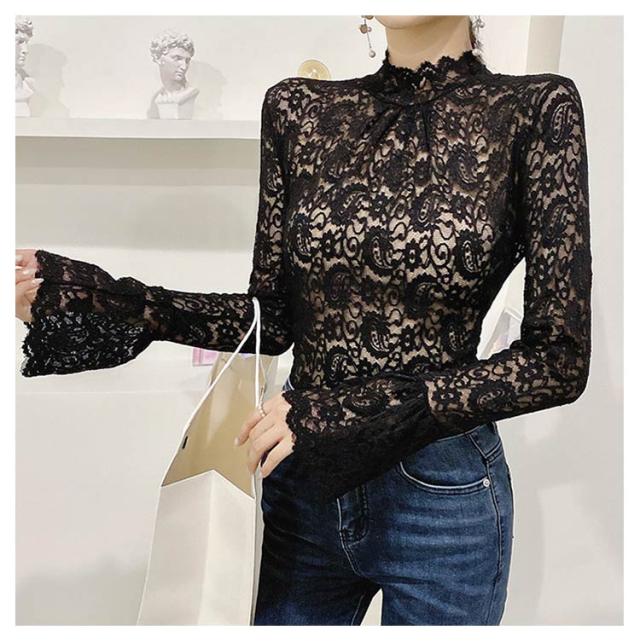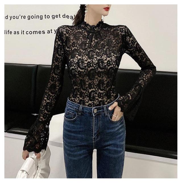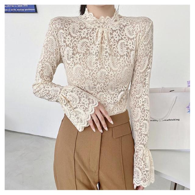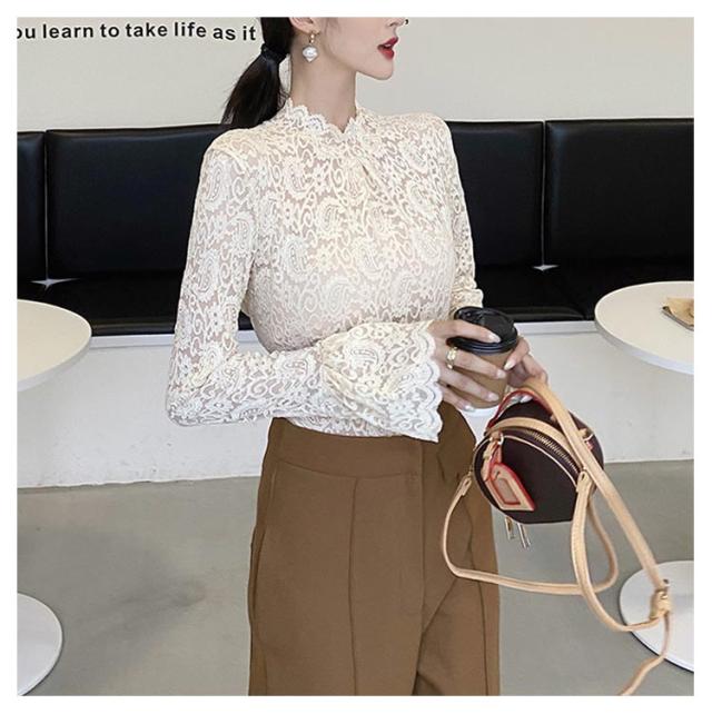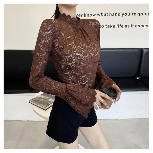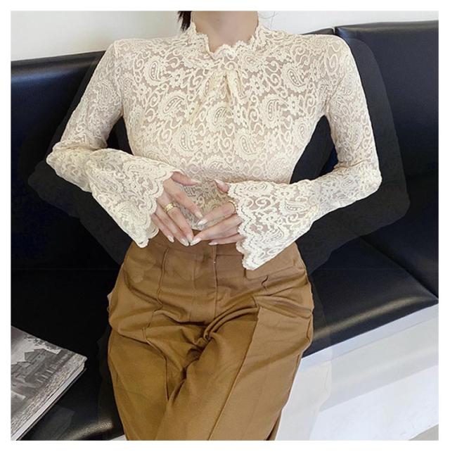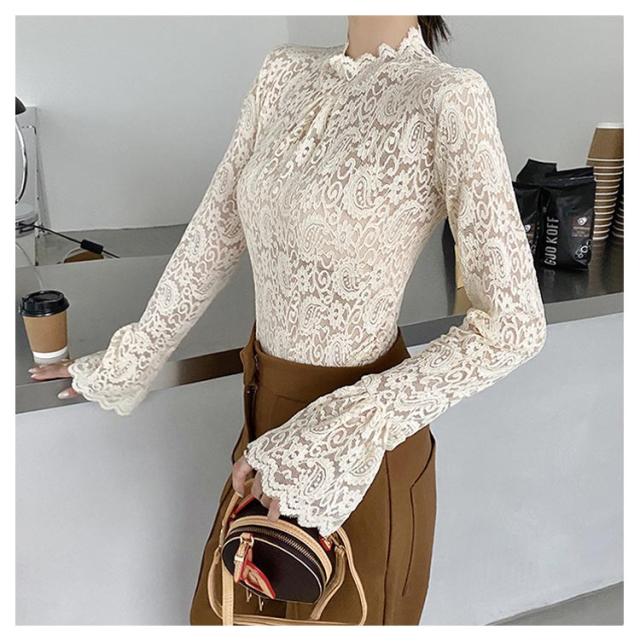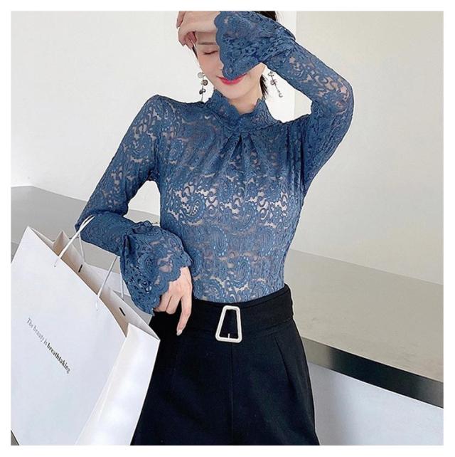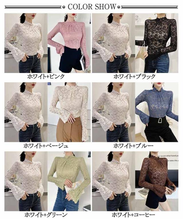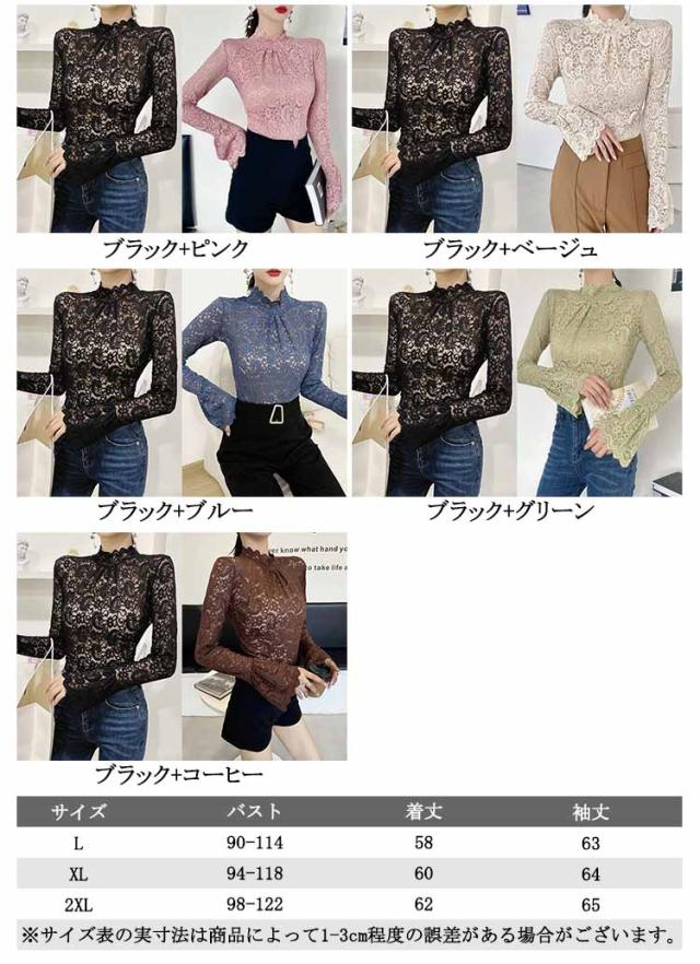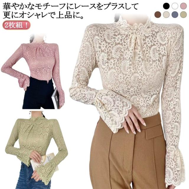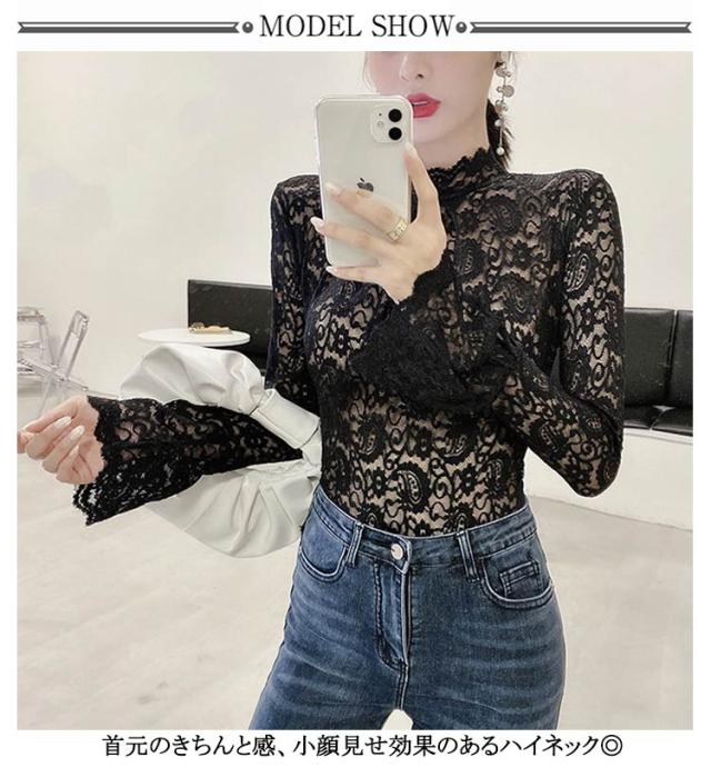 ハイネック レース 細見え タートルネック トップス ゆったり 長袖 レース カーディガン 体型カバー シャツ きれいめ 秋 インナー 大きいサイズ レディース オフィス ボートネック お洒落 高見え 通勤