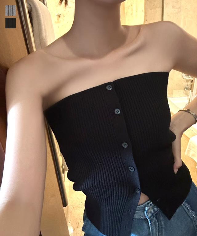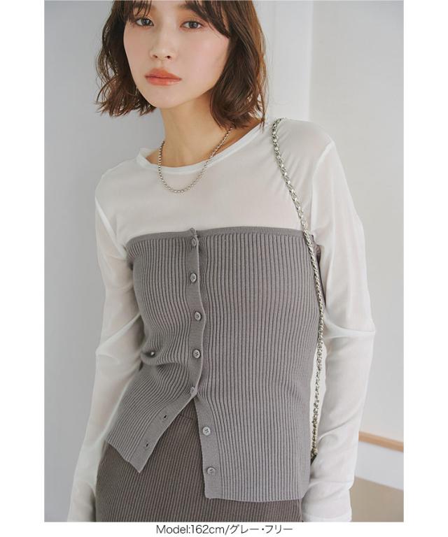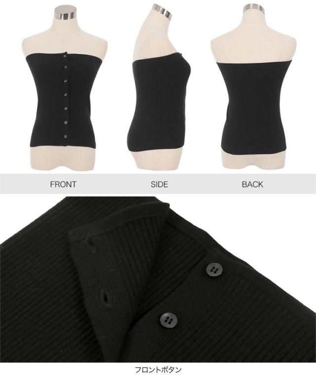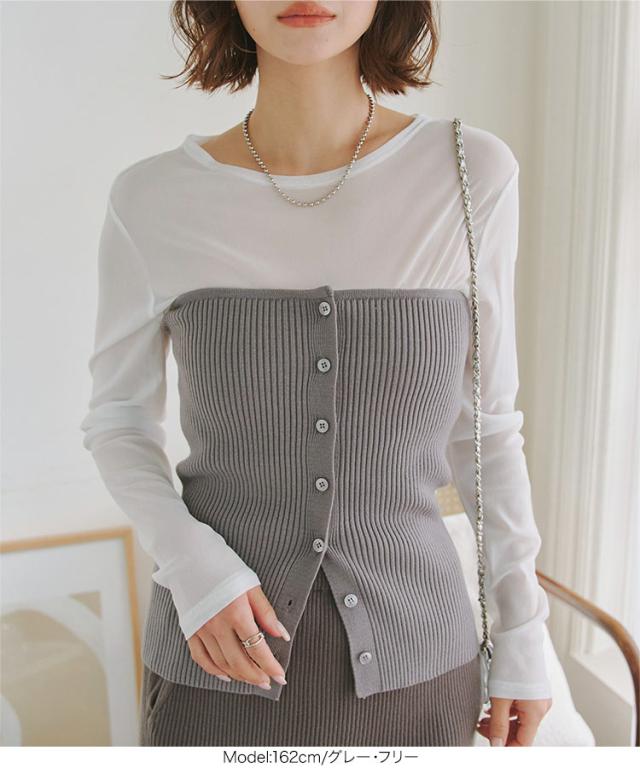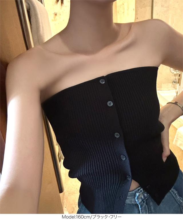 春新作 リブニットビスチェ C7402 入荷済 レディース リブニット ベア ビスチェ ベアトップ ニットビスチェ レイヤード 重ね着 ニット リブ ボタン 無地 グレー ブラック 灰色 黒色 20代 30代 40代 トップス カジュアル クール コンサバ マ